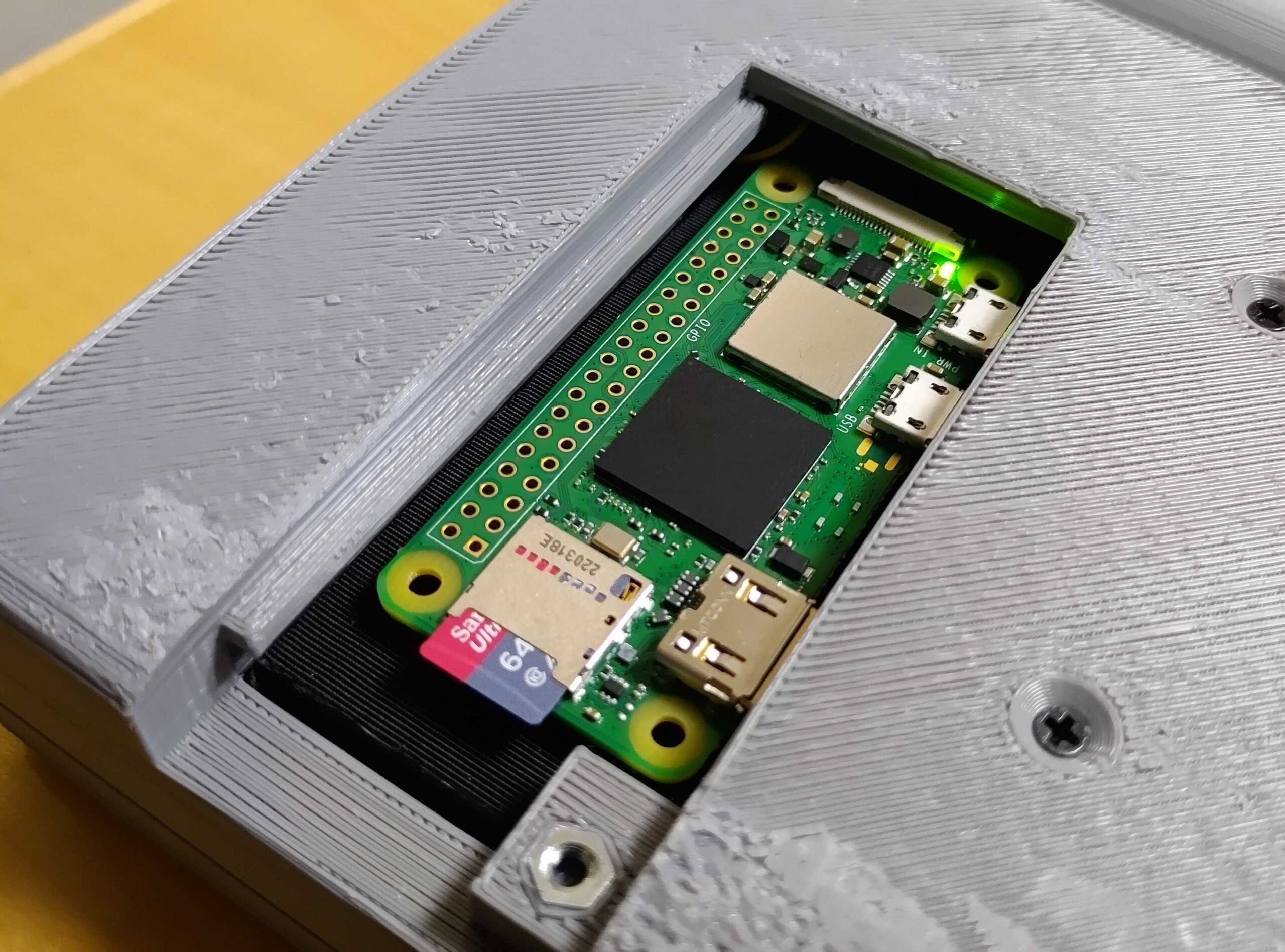 ラズパイ本体はSDカード、GPIOにアクセスできるようにするため、蓋を設ける。USB、LAN等のコネクタ部も同様。